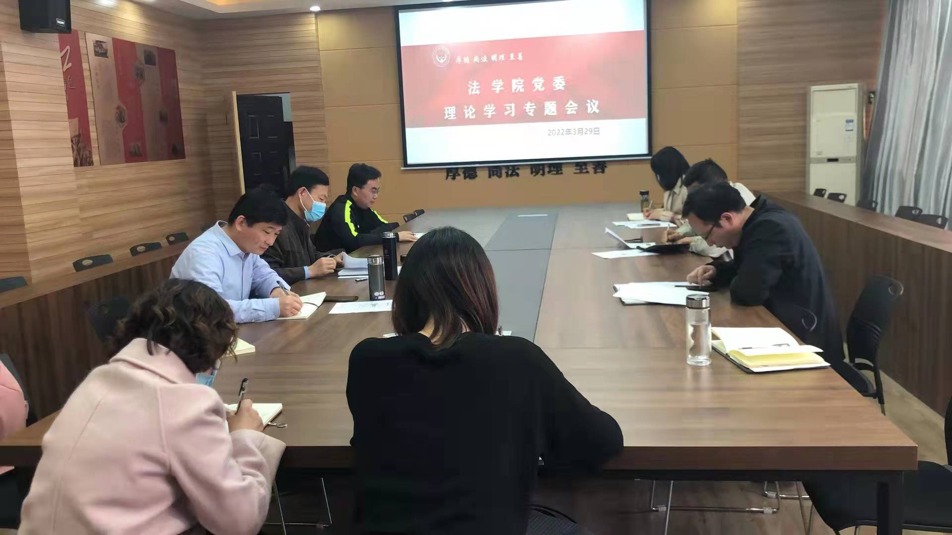 会议分两个阶段进行,第一阶段学习理论。陈从志从为什么办教育、办什么样的教育、如何办教育三个层面进行了领学习近平总书记关于教育的重要论述,他指出,习近平总书记提出的“我们办的是社会主义教育,培养的是社会主义建设者和接班人”,“教育是为人民服务、为中共治国理论服务的、为中国特色社会主义制度服务,为改革开放和社会主义现代化建设服务的”等论述,回答了为什么办教育的根本问题。习近平总书记强调的“办人民满意的教育”,“让13亿人民享受更好更公平的教育,获得发展自身、奉献社会、造福人民的能力”等论述,明确了办什么样的教育问题。习近平总书记提出的“9个坚持”、“实施立德树人工程”、“教师是教育发展第一资源,要高度重视教师队伍建设”、“‘四有’好老师、‘四个引路人’、四相统一一系列要求”等,阐明了如何办教育问题。这些重要论述,为我们提升境界、推进工作,指明了方向、提供了遵循,我们作为教育工作者一定要认真学习、深刻领会、身体力行。按照 “有理想有信念、有道德有情操、有扎实知识、有仁爱之心”的好老师标准,当好学生锤炼品格、学习知识、创新思维、奉献祖国的引路人,做到教书育人相统一、言传身教相统一、潜心问道与关注社会相统一、学术自由与学术规范相统一,建设一支政治素质过硬,业务能力精湛,育人水平高超的高素质教师队伍,全面提升法学院人才培养能力