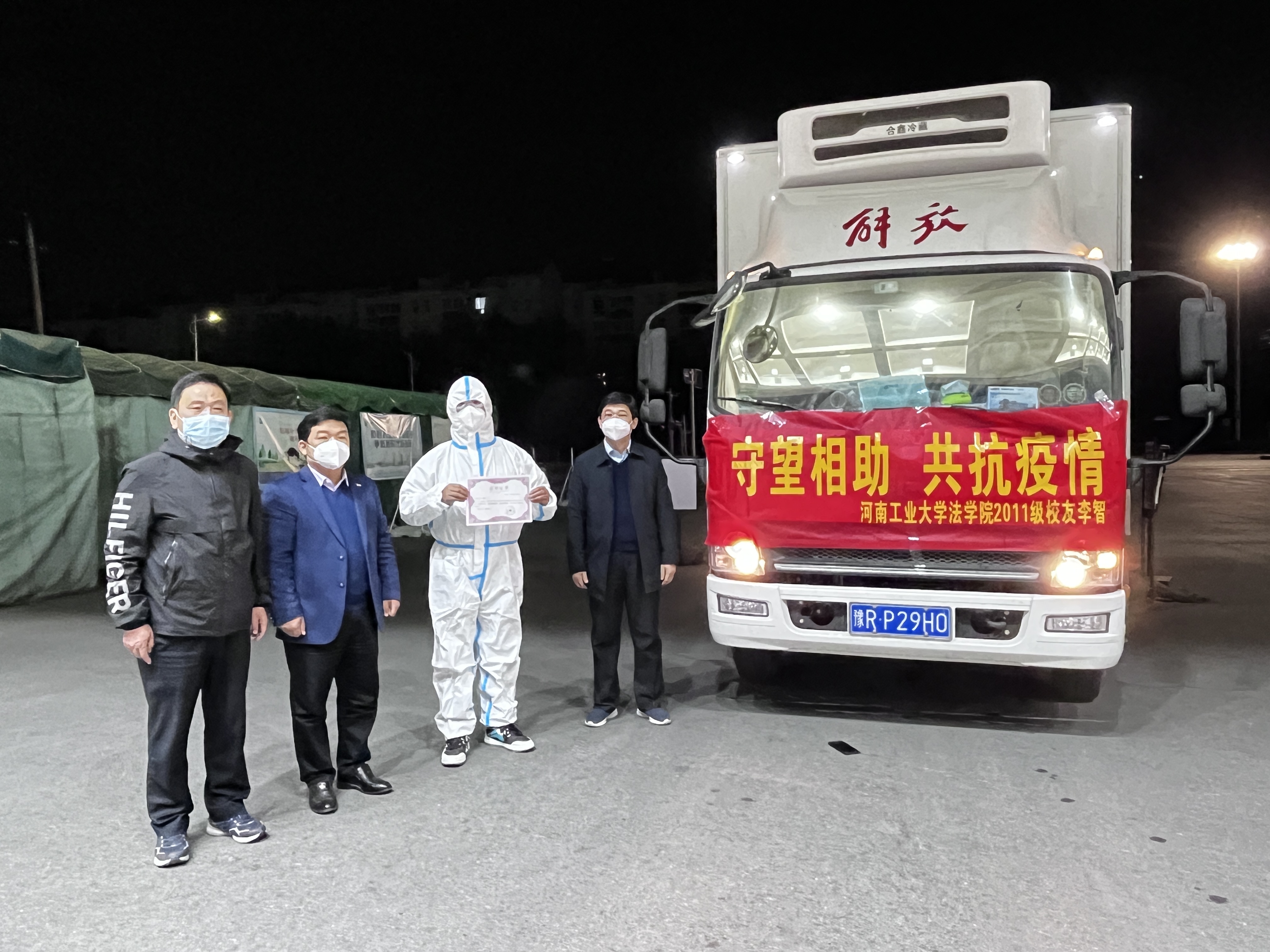 李智是我院2011级优秀校友,现任郑州钱大妈农产品有限公司蔬菜采购负责人。在获悉学校疫情后,11月4日晚,李智主动联系毕业论文指导教师李棽教授,表达想为母校捐赠蔬菜、食品等急需物资的意愿。5日下午3点捐赠物资在中牟开始装车,经过市区多个站点,于当晚11点50分许运抵莲花街校区南门。经过车辆消杀、抗原检测等防疫程序后,校友办和学院负责同志代表学校在南门举行了简短的捐赠仪式,对李智校友的善举表示衷心感谢,并为其颁发捐赠证书。韩永刚表示,在学校疫情防控的关键时期,李智校友的爱心捐赠,让在校师生深受感动、倍感温暖。