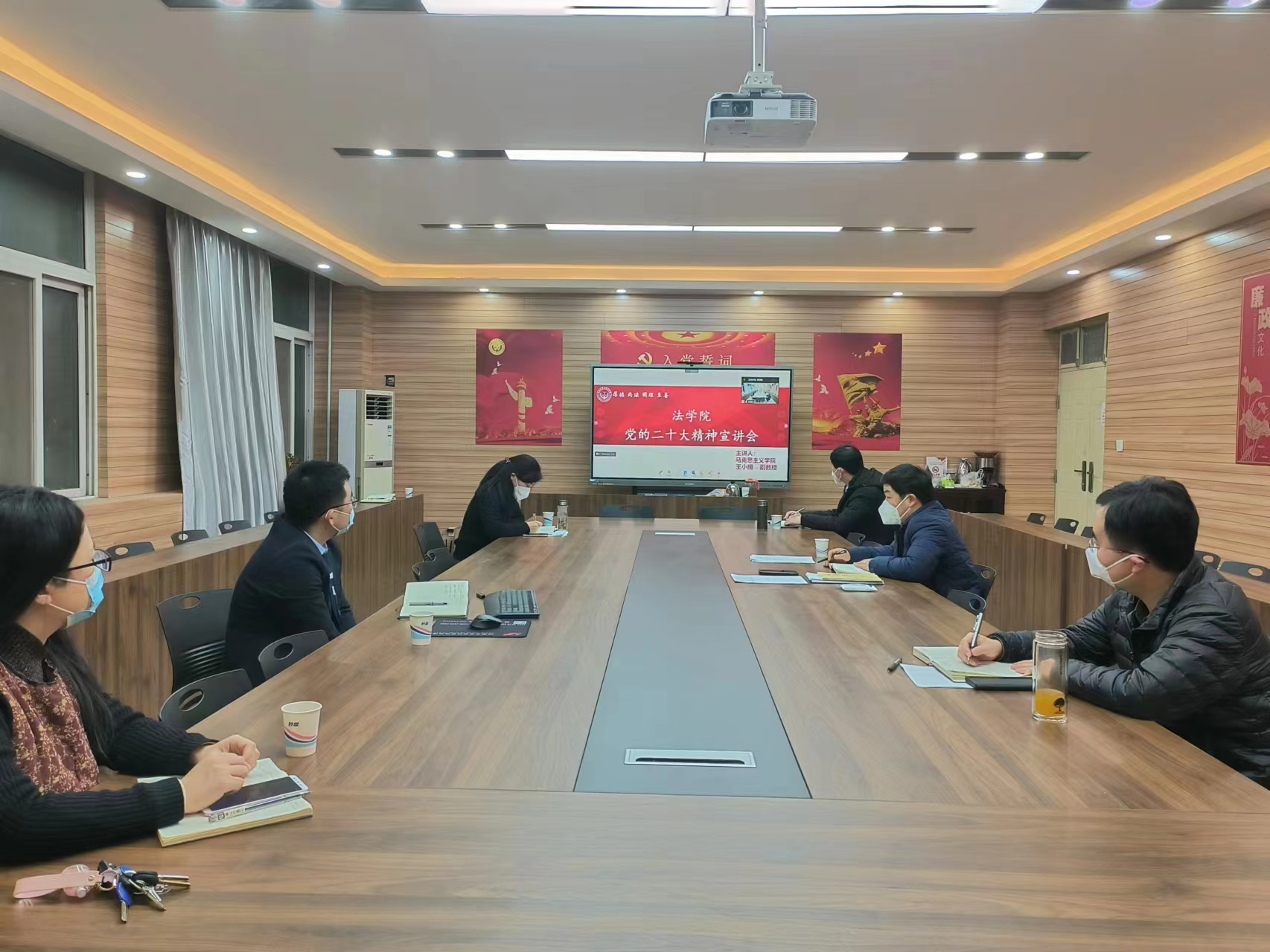 12月11日晚上,学院以线上线下结合形式举行学习贯彻党的二十大精神宣讲会。邀请到专题宣讲团成员、马克思主义学院副教授王小拥作党的二十大精神宣讲。院党委书记韩永刚,院长张道许,党委副书记许文,学院全体教师、全体行政人员参加会议。会议由韩永刚主持。