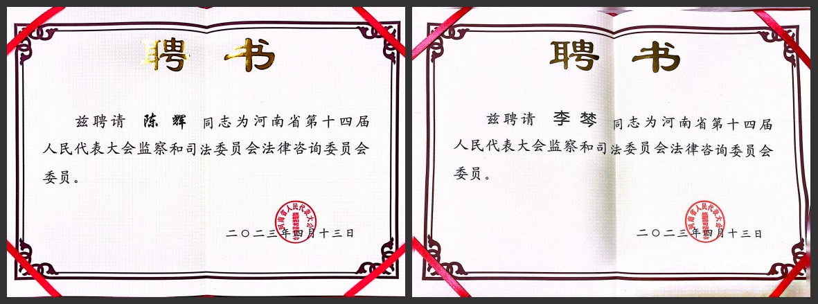 6月1日,河南省第十四届人民代表大会监察和司法委员会法律咨询委员会全体会议,在河南省人大常委会机关十楼视频会议室召开。法学院教授李棽、青年教师陈辉应邀参会,并被聘为河南省第十四届人大监察司法委法律咨询委员会委员,河南省人大常委会副主任何金平为李棽和陈辉颁发聘书。