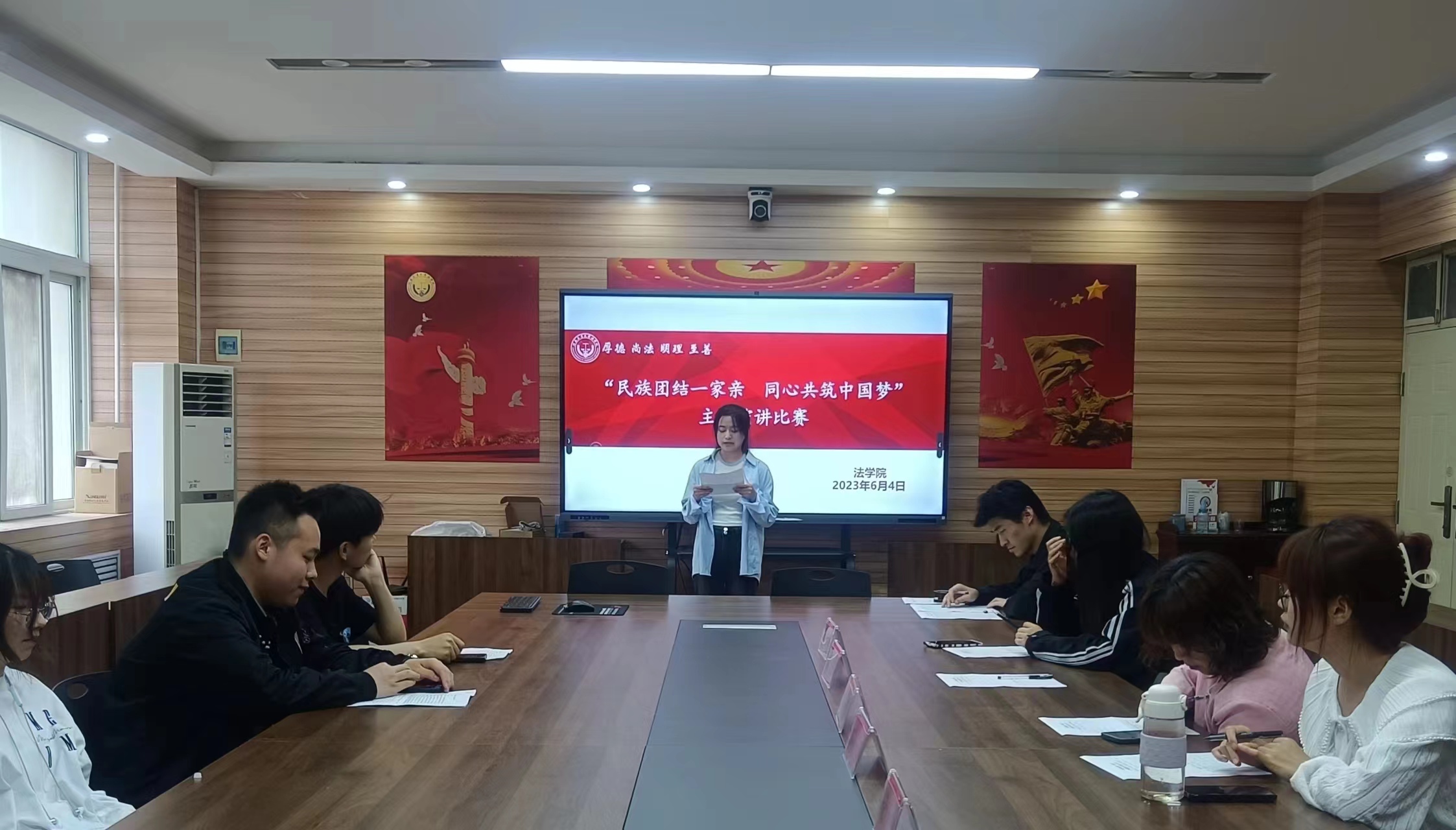 6月4日,法学院在3424会议室举行了“中华民族一家亲 同心共筑中国梦”主题演讲比赛。辅导员周静、学生工作人员及参赛选手参加比赛活动。