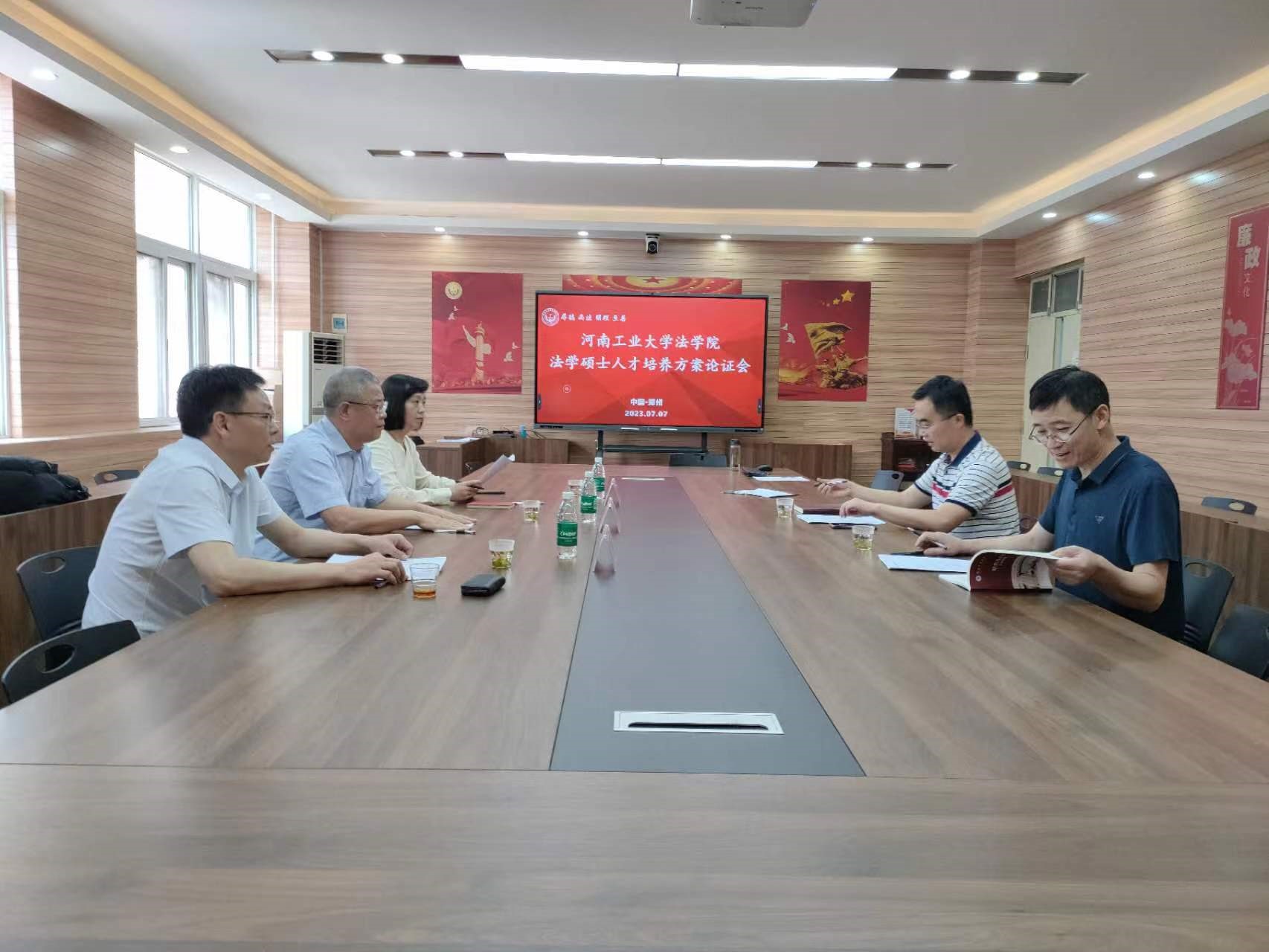 张道许向专家莅临我院指导表示热烈欢迎,介绍了学院近年来的发展情况,希望专家不要顾及情面,提出自己的真知灼见。王君祥汇报了法学硕士研究生人才培养方案的制订情况,说明了法学硕士课程设置的依据、具体细节。三位专家充分肯定了法学院硕士生培养方案,提出四点修改建议:一要结合法学一级学科硕士学位基本要求,紧密结合国家法治建设、行业发展前沿和企事业用人需求,细化人才培养目标,具有针对性;二要结合法学一级学科研究生核心课程指南搭建课程体系,科学合理设置课程;三要突出学位点的学科特色,设置相应的特色课程;四是参照相关兄弟院校的专业课程设置,结合河南工业大学法学院实际,进一步修改完善。