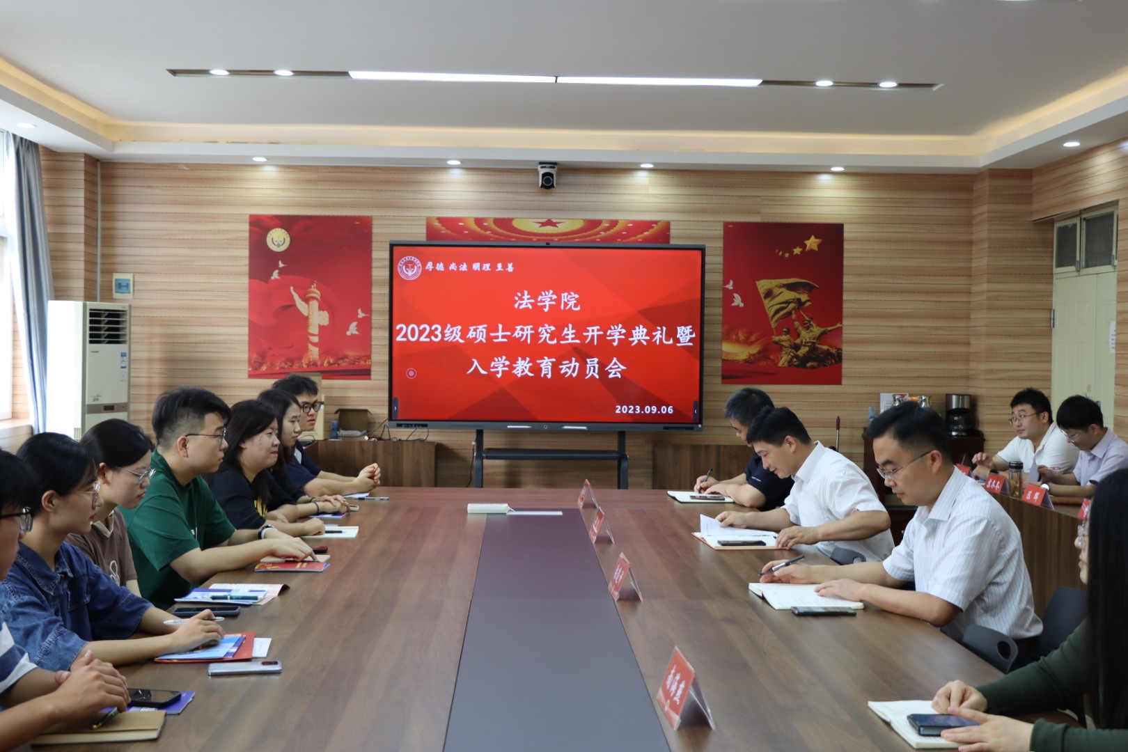 9月6日,法学院2023级研究生新生开学典礼暨入学教育动员会在法学院会议室隆重举行。院长张道许、党委副书记许文、副院长南海燕,研究生指导教师、科室主任、全体辅导员及2023级全体研究生参加了典礼。典礼由许文主持。