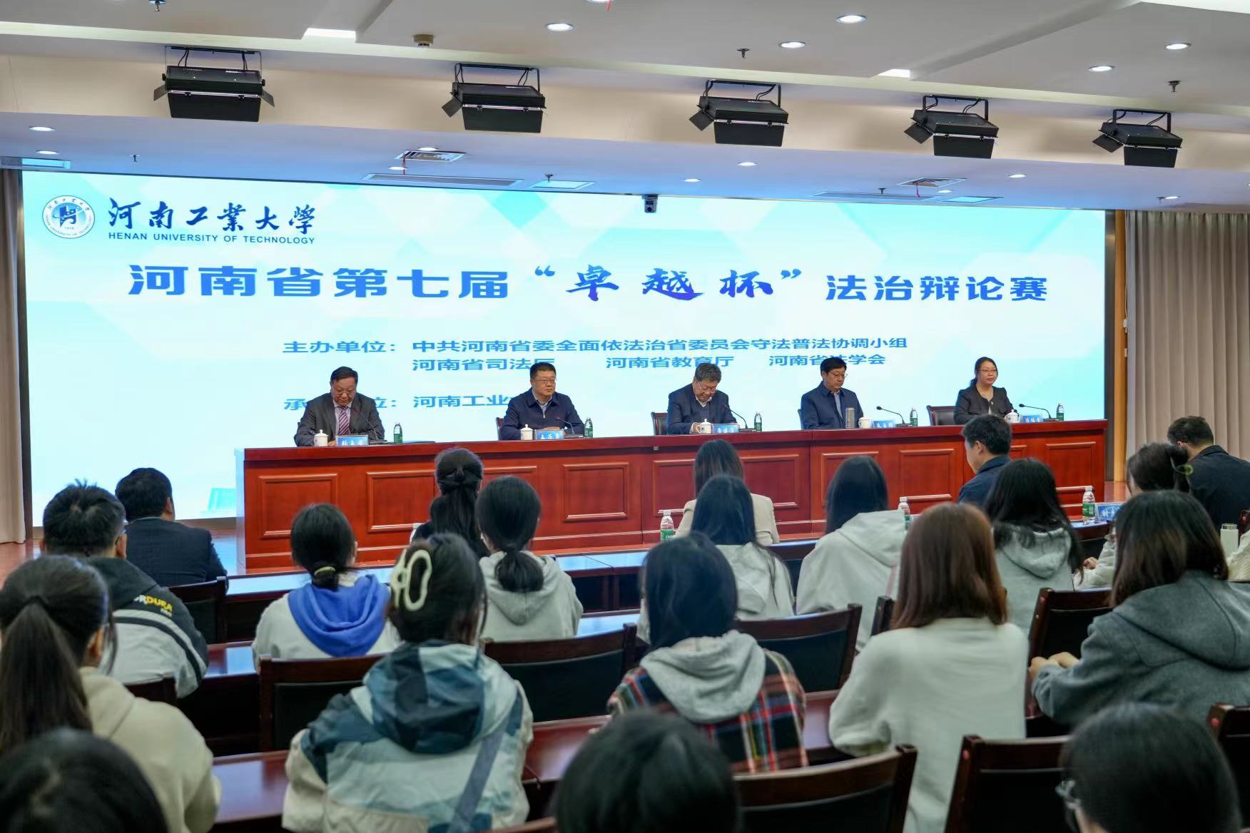 11月7日上午,由中共河南省委全面依法治省委员会守法普法协调小组、河南省司法厅、河南省教育厅、河南省法学会主办,河南工业大学承办的河南省第七届“卓越杯”法治辩论赛开幕式在我校莲花街校区D205学术报告厅隆重举行。