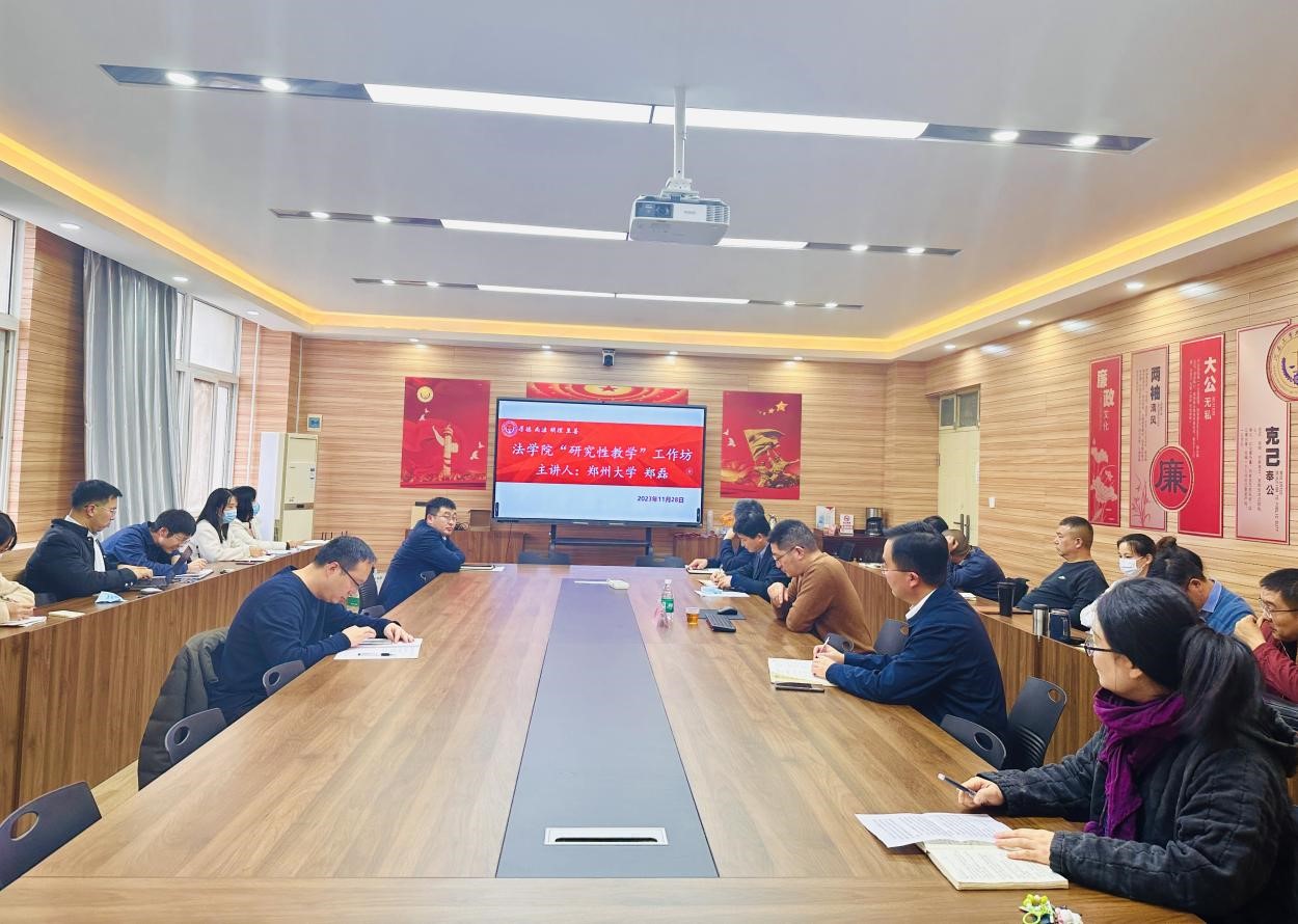 11月28日,法学院邀请郑州大学法学院郑磊博士做“研究性教学”工作坊主题培训,学院领导班子全体成员、全院教师参加,培训会由副院长南海燕主持。