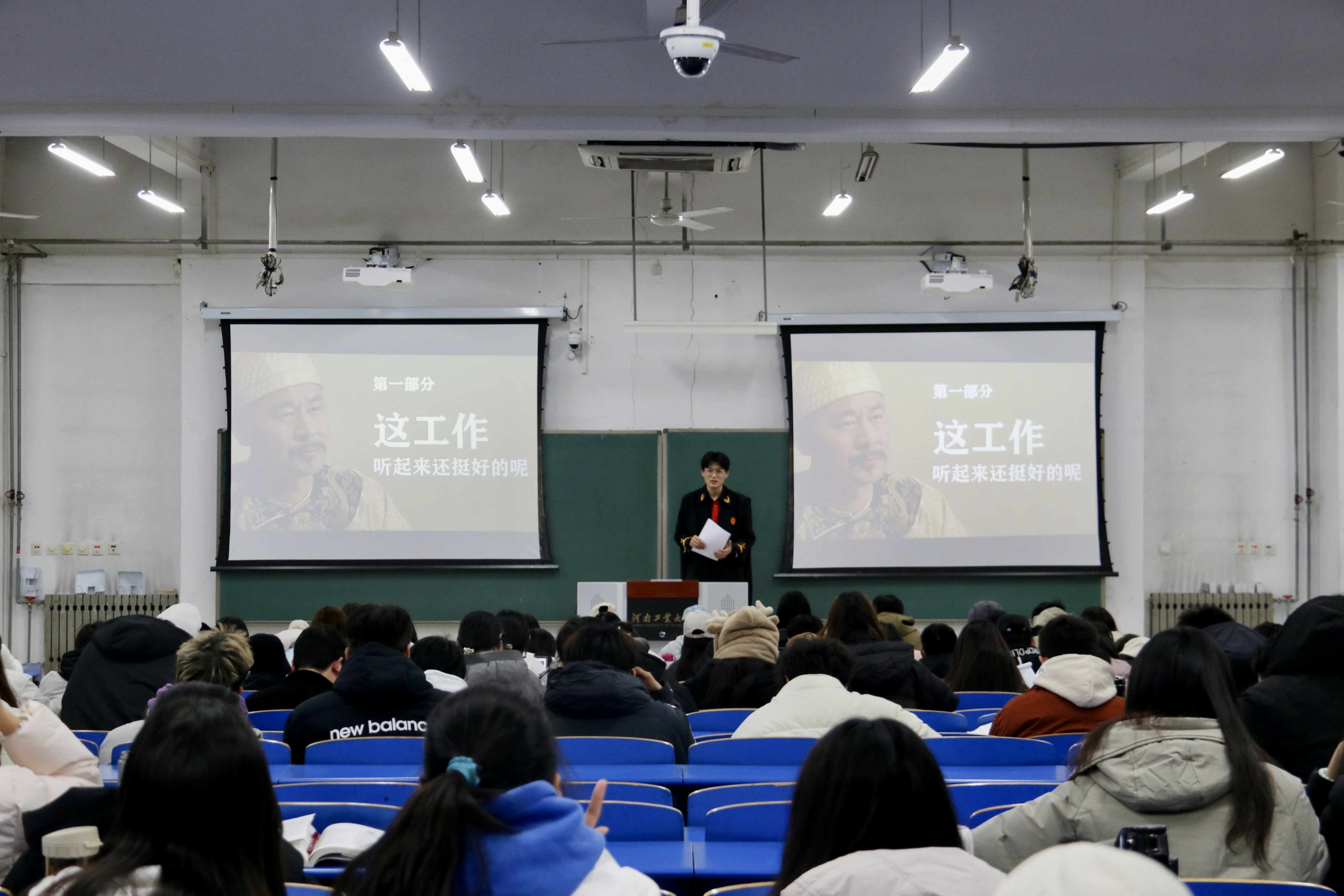 近年来,电信网络诈骗犯罪呈多发态势,为提高我院学生防诈意识和反诈能力,筑牢校园安全防线,12月14日,法学院反诈宣讲团于3101教室为2022级全体学生开展反诈骗宣讲暨普法活动。辅导员周静、李丹龙出席本次活动。活动由王莹杰主持。