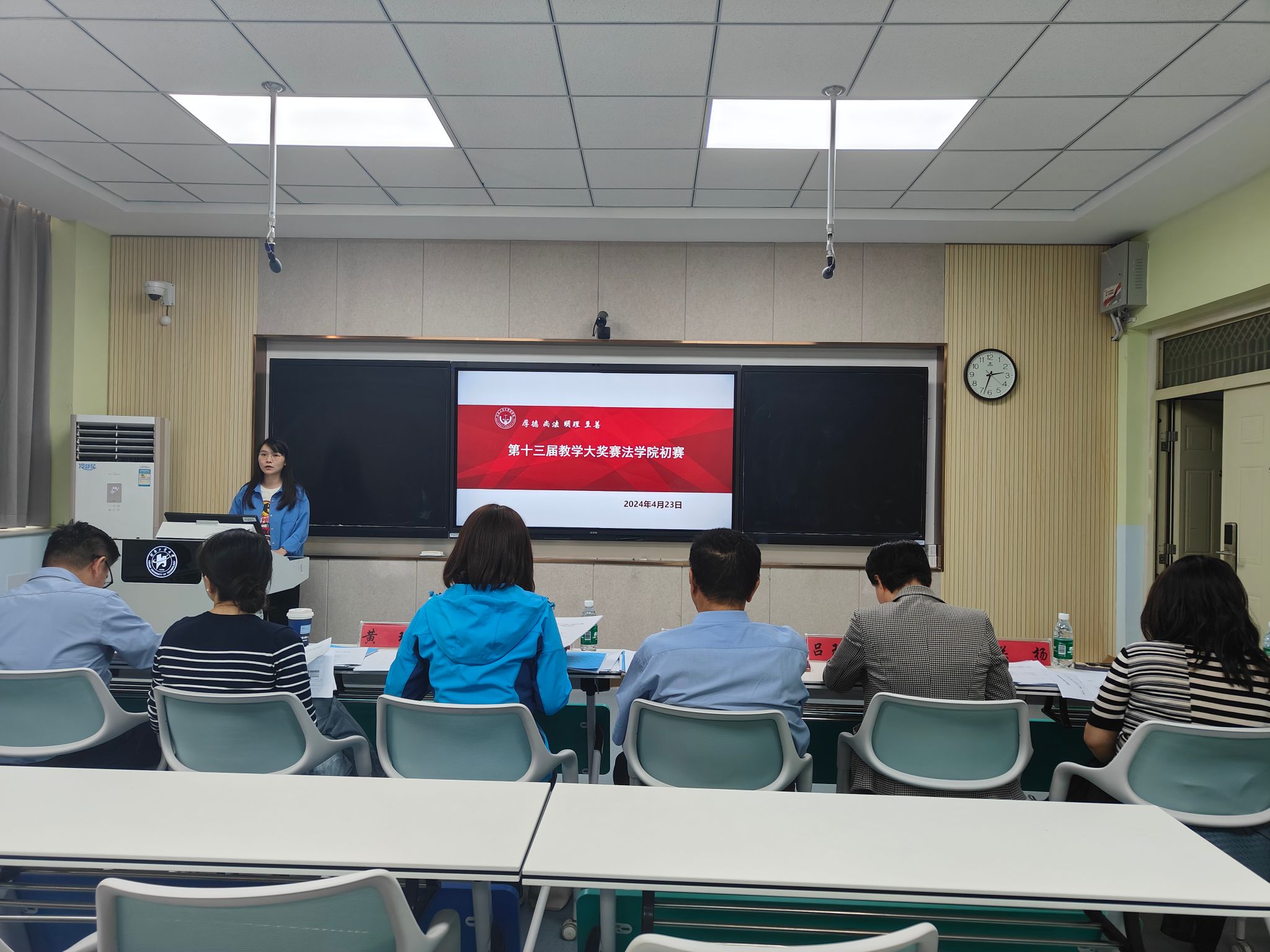 为落实立德树人根本任务,聚焦学术型人才培养,推动审核评估整改,提升研究性教学水平,激发课堂教学创新活力,根据学校“关于举办第十三届教学大奖赛的通知”的要求,学院于4月23日下午在3211教室举行了第十三届教学大奖赛初赛。比赛邀请了国家级、省级一流课程负责人、省教学名师吕玉花教授、杨丽教授、黄玮教授、关杨副教授,法学院李文江教授、陈政副教授、穆向明副教授担任评委,比赛由教学办任静主持。院班子成员及全体教师现场观摩了比赛。