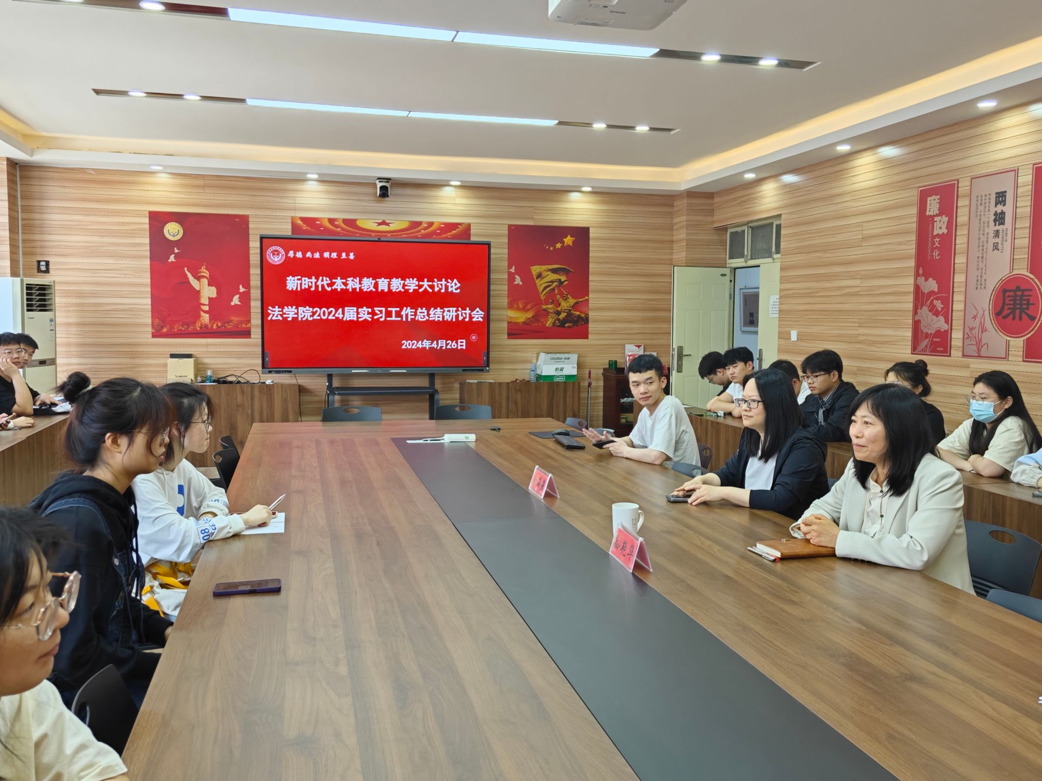 4月26日,法学院在3424会议室召开新时代本科教育教学大讨论—2024届本科实习工作总结研讨会。副院长南海燕、教学办副主任孙艳华参会,会议由孙艳华主持。