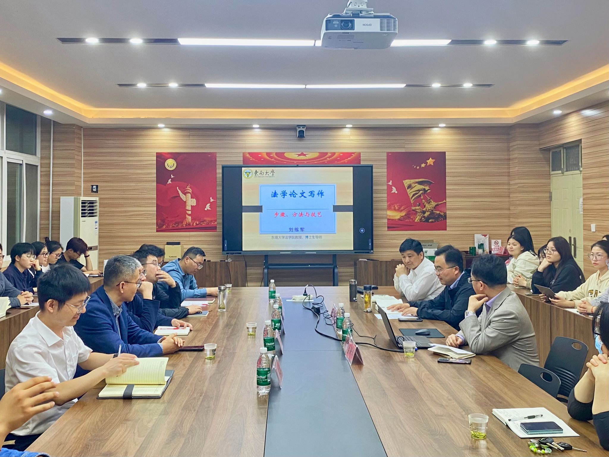 近日,法学院在3424会议室成功举办“教学工作坊”暨第95期“政法论坛”,东南大学法学院教授、博士生导师刘练军做题为“法学论文写作的思路、方法与技艺”的研究型教学及论文写作方法培训。河南师范大学法学院袁勇教授、院班子成员、青年博士及硕士研究生、部分本科生参加,工作坊由院长张道许主持。