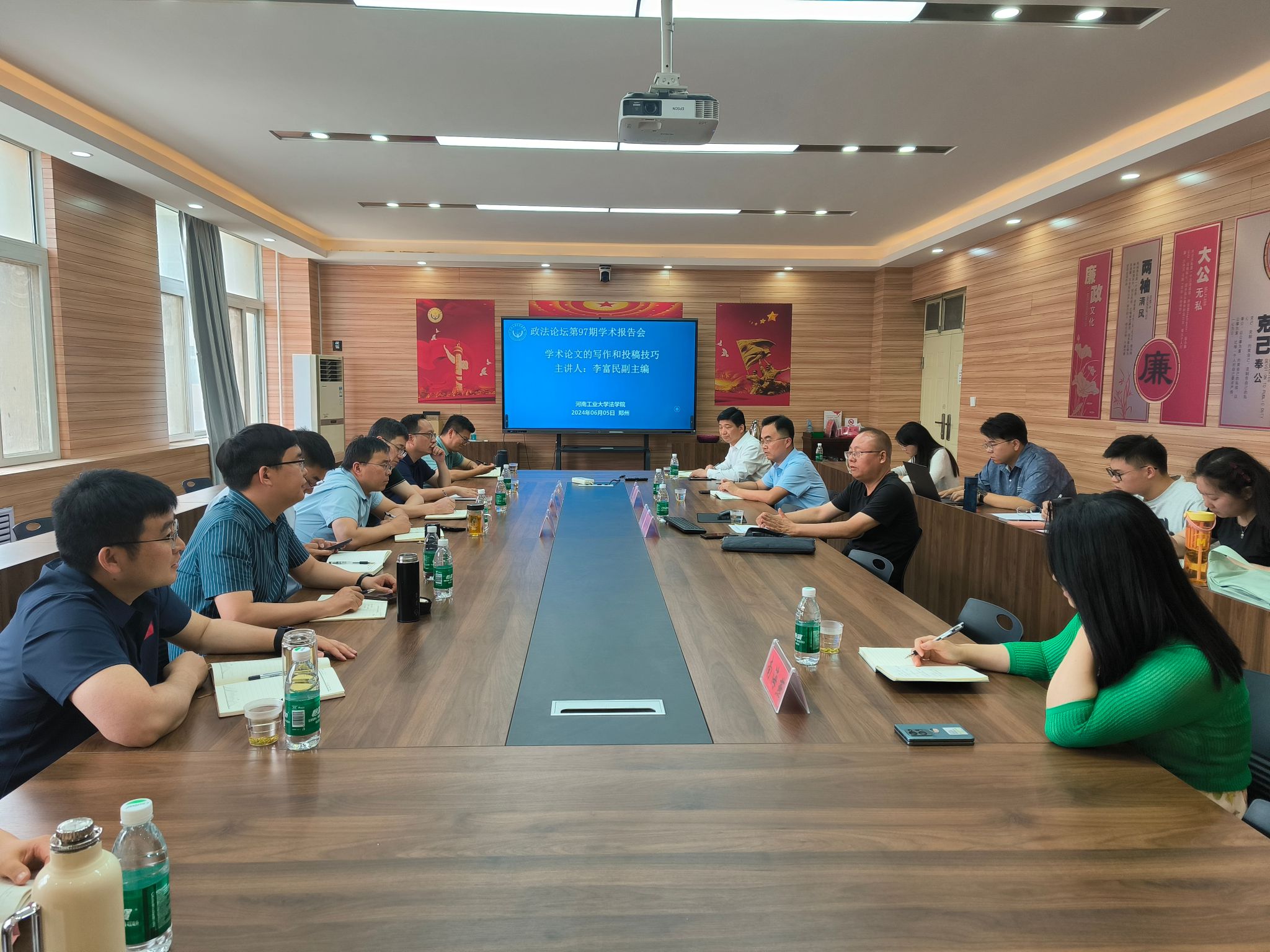 6月5日,法学院在学院3424会议室成功举办“政法论坛”第97期学术报告会。河南财经政法大学学报编辑部李富民副主编做题为“学术论文的写作和投稿技巧”的学术报告。法学院院长张道许教授、党委副书记许文副教授、副院长南海燕副教授、王君祥教授、李耀跃副教授,陈政副教授、张静副教授、陈辉副教授、单奕铭博士、王文明博士及硕士研究生、部分本科生参加报告会。报告会由张道许主持。