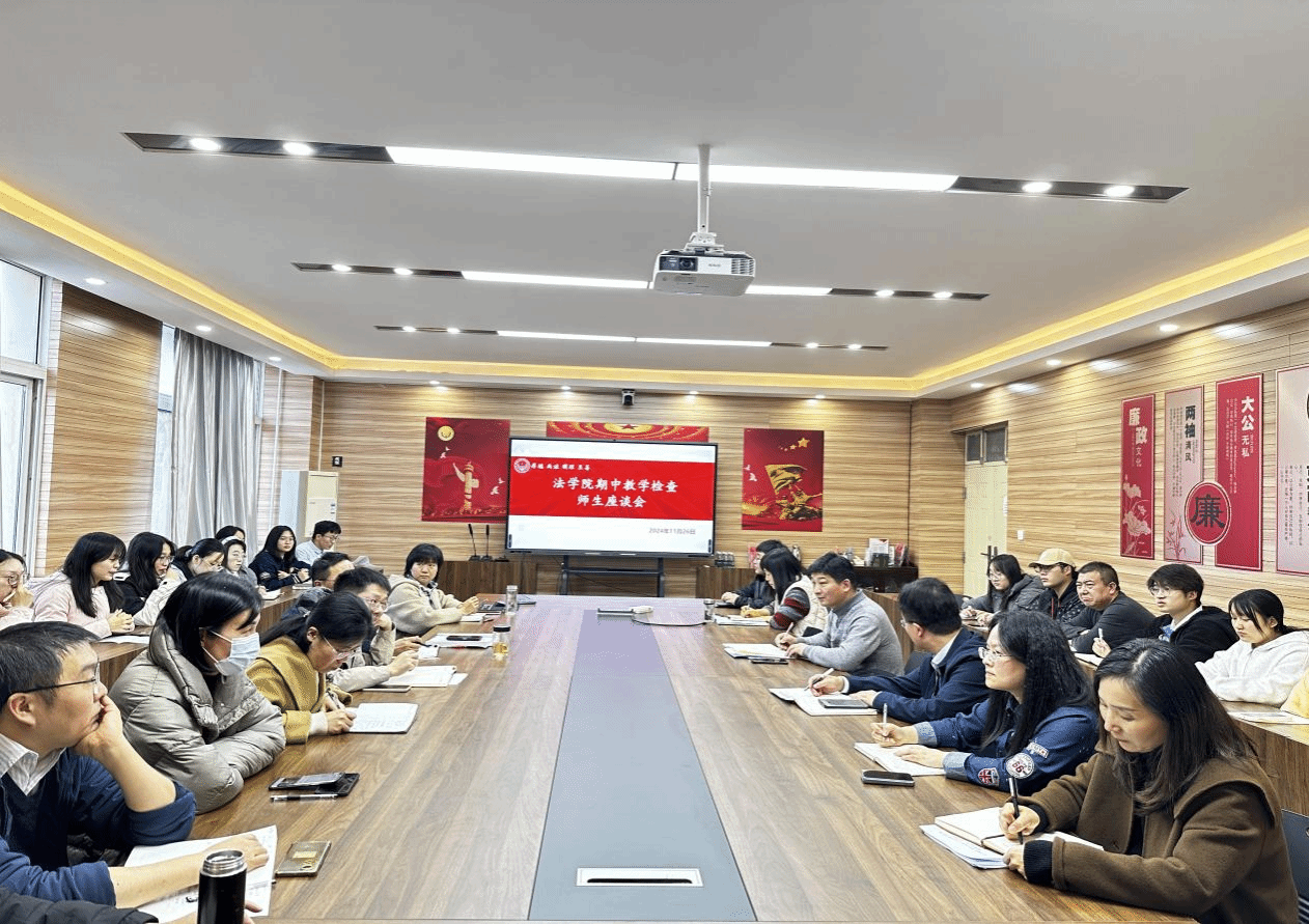 为进一步落实“立德树人”根本任务,提升法学专业人才培养质量,强化教风学风建设,法学院于11月26日在3424会议室分别召开了期中教学检查师生座谈会及督导工作会议。校督导、学院领导班子、任课教师、学生代表及院教学督导委员会成员参加了会议。