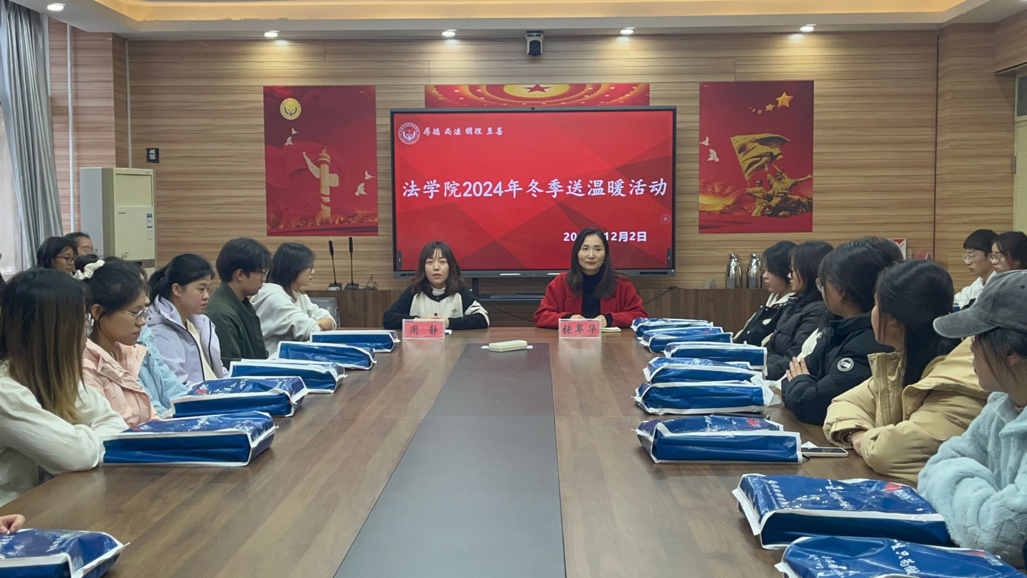12月2日,法学院在3424会议室开展2024年“冬季送温暖”活动。学院党委副书记张翠华、辅导员及全体受助学生参加活动。
