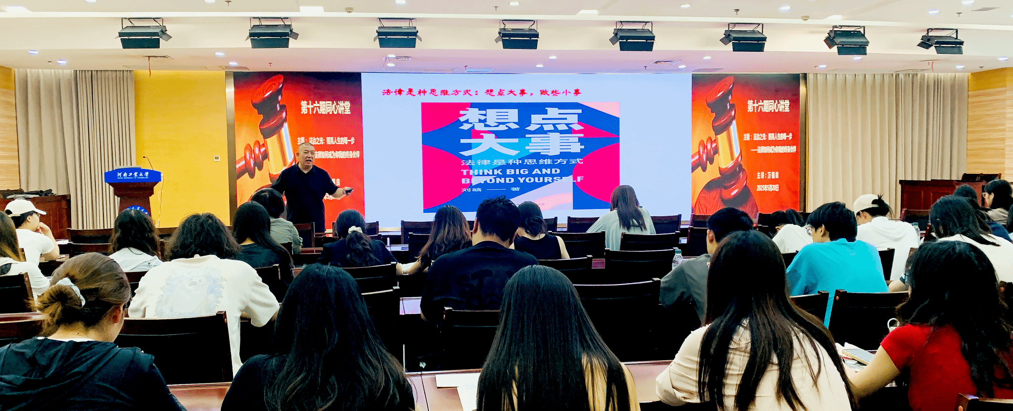 为深入学习贯彻习近平法治思想,提升师生法治素养和毕业生自我保护能力,5月20日下午,由党委统战部主办的第十六期“同心讲堂”在学术报告厅D205举办。我院教师、民盟河南工业大学委员会副主委万福良作《法治之光:照亮人生的每一步——法律如何成为你我的终身伙伴》专题讲座。校内150余名师生参加活动。