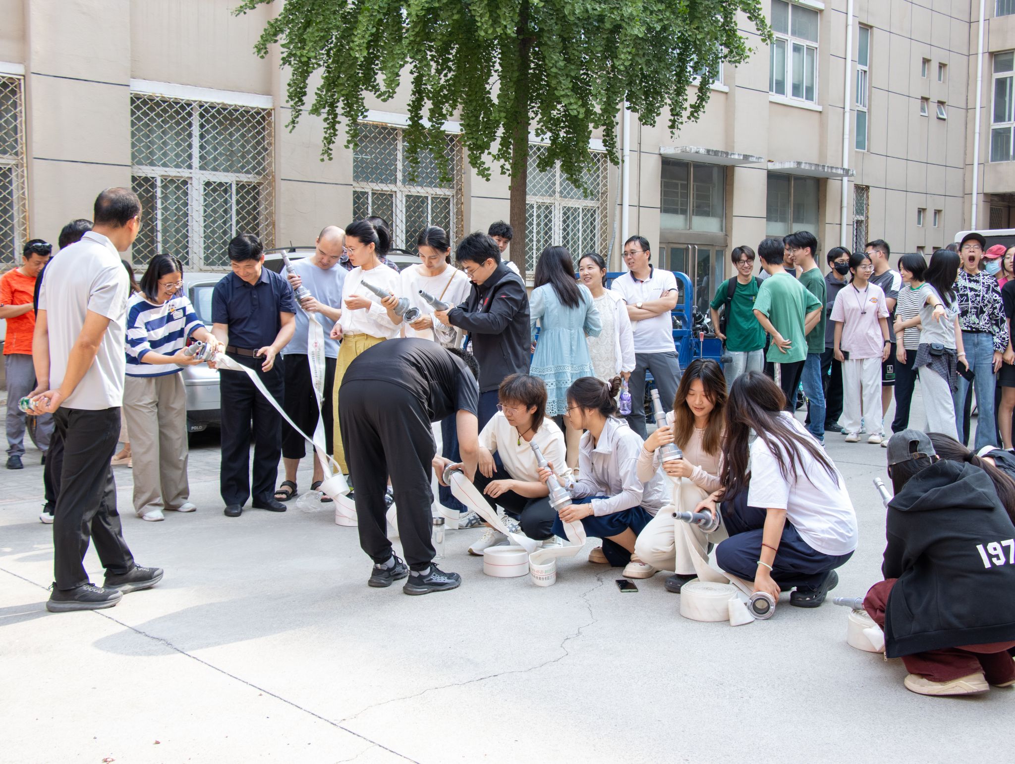 理论培训结束后,实操演练拉开帷幕。孙志华现场演示了消防面具和灭火器,消防水带的正确使用方法,并指导学院教师和学生分组进行了灭火及消防水带等消防器材的实际操作。