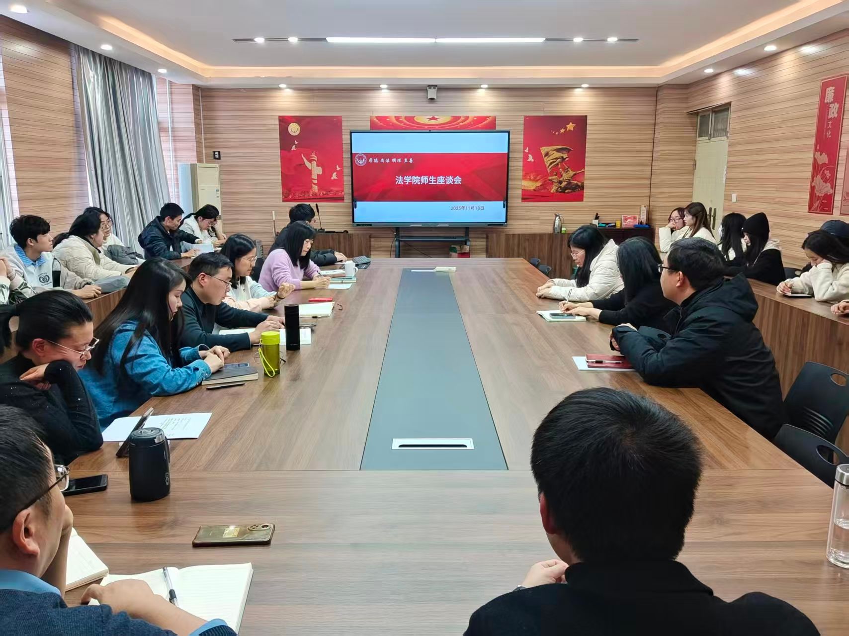 为深入贯彻“立德树人”根本任务,切实提高法学专业人才培养质量,持续加强教风与学风建设,11月18日下午,法学院在3424会议室先后组织召开师生座谈会和督导工作会议。学院领导班子成员、任课教师代表、各年级学生代表及院教学督导委员会成员参加了会议,围绕教学过程中存在的问题与改进路径展开了充分交流。