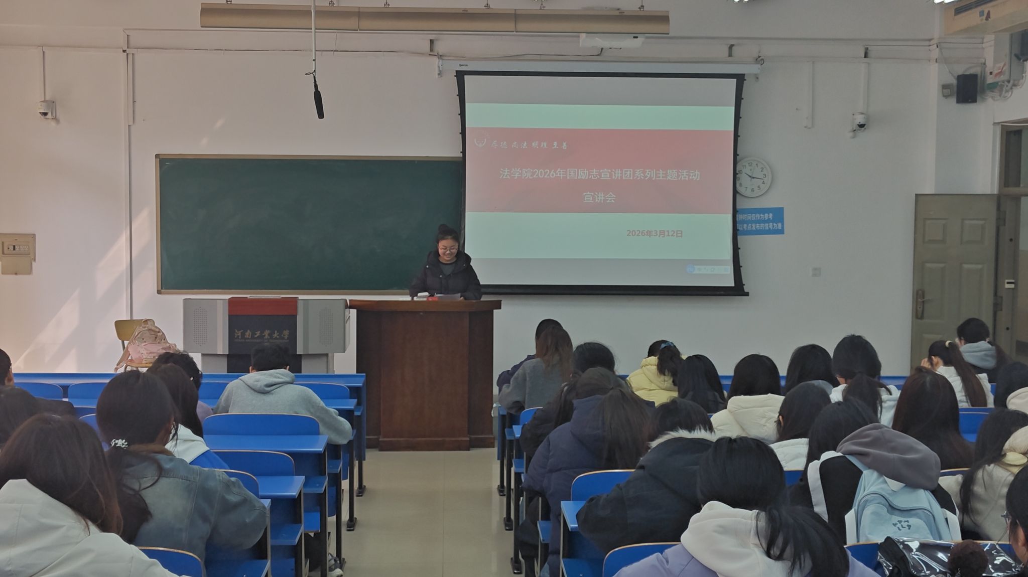 为深化学校资助育人工作内涵,充分发挥榜样的引领示范作用,3月12日,法学院在博学楼4137举办“青春的榜样”国奖励志宣讲活动。学院全体辅导员、国奖励志宣讲团成员及100余名学生代表参加了本次宣讲活动。