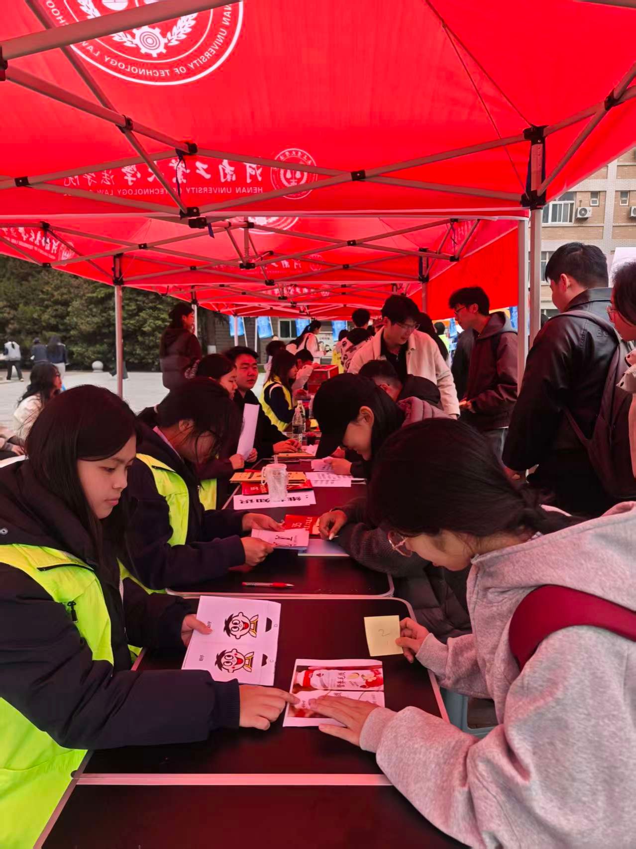钟楼广场设立了沉浸式互动体验区。在“火眼金睛,识破消费陷阱”展区陈列着真假商品对比图、违规广告典型案例,通过直观对比,锻炼了参与者甄别假冒伪劣商品的能力;在“快速竞答,掌握维权法宝”区域,参与者随机抽取关键维权条款题卡并进行限时记忆,“三包规定”“维权五途径”等法律要点被深深烙印在同学们心中。同时,参与者还积极将维权知识分享至社交平台,以行动传递法治“好声音”。现场设置的套圈赢奖品游戏,更是将活动气氛推向高潮。