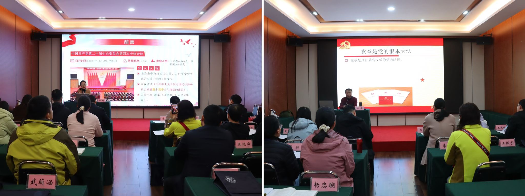 在理论讲授环节,新乡市委党校郭婧副教授作了《深入学习领会习近平总书记在党的二十届四中全会上的重要讲话精神》专题报告。她带领学员系统回顾“十四五”时期的非凡成就,深入解读全会精神的丰富内涵,并对“十五五”规划的战略部署与重点任务进行详尽分析,为学员们深化理论认识、把握时代脉搏奠定坚实基础。李伟副教授以《学党章 强党性 做合格共产党员》为题,系统讲解党章是什么、党章的历史演进与现行党章的丰富内涵,结合大量党史典型案例,生动阐释了党章作为党的根本大法的核心地位及其实践要求。