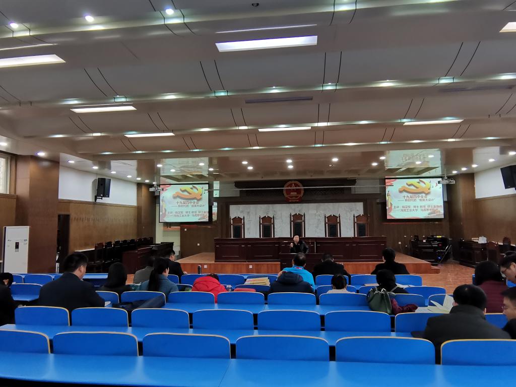 12月10日下午,法学院在模拟法庭召开深入学习党的十九届四中全会精神专题学习会。马克思主义学院杨卫军教授应邀作专题报告,法学院全体教职员工参加学习,学院党委书记陈从志主持会议。