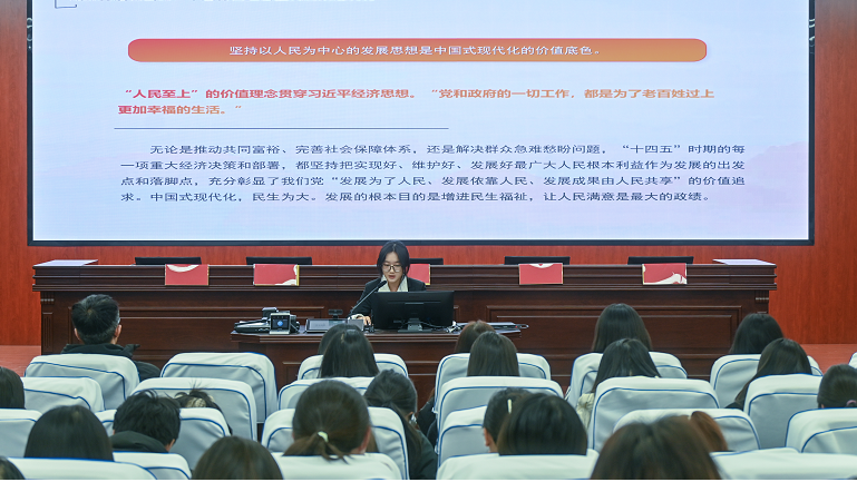 为深入学习贯彻党的二十届四中全会精神,引导青年学子精准把握国家发展脉络,凝聚奋进力量,12月9日,校青年讲师团成员周静与大学生理论宣讲团成员包轩宁走进法学院,在博识楼3121开展主题宣讲活动,学院200余名学生参与学习。