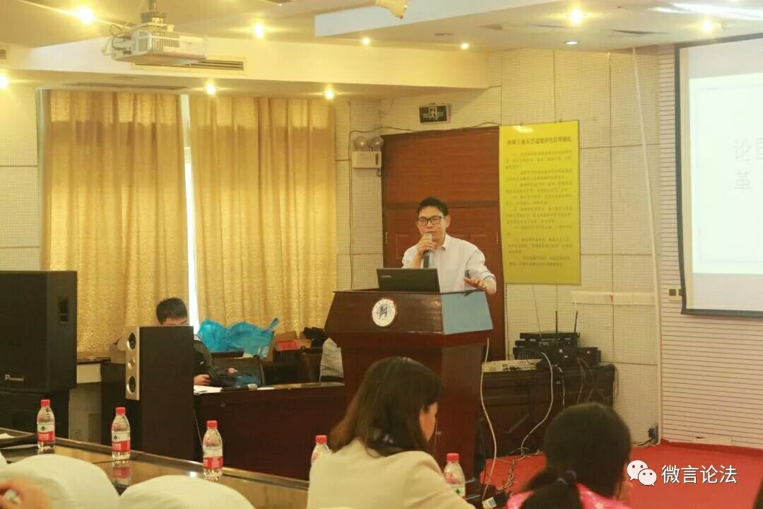 为深入贯彻党的十九大精神,进一步研习宪法修改的内容,落实国家宪法日的活动主题,11月4日下午,在校党委宣传部和校团委的支持下,以法学院为主办单位的第210期“工大讲坛”在4222报告厅举行。本次讲坛的主讲人为武汉大学法学院江国华教授,主题为“监察制度改革中的热点问题”。法学院党委书记宋芙晖、院长黄建水以及全体师生聆听了讲座。