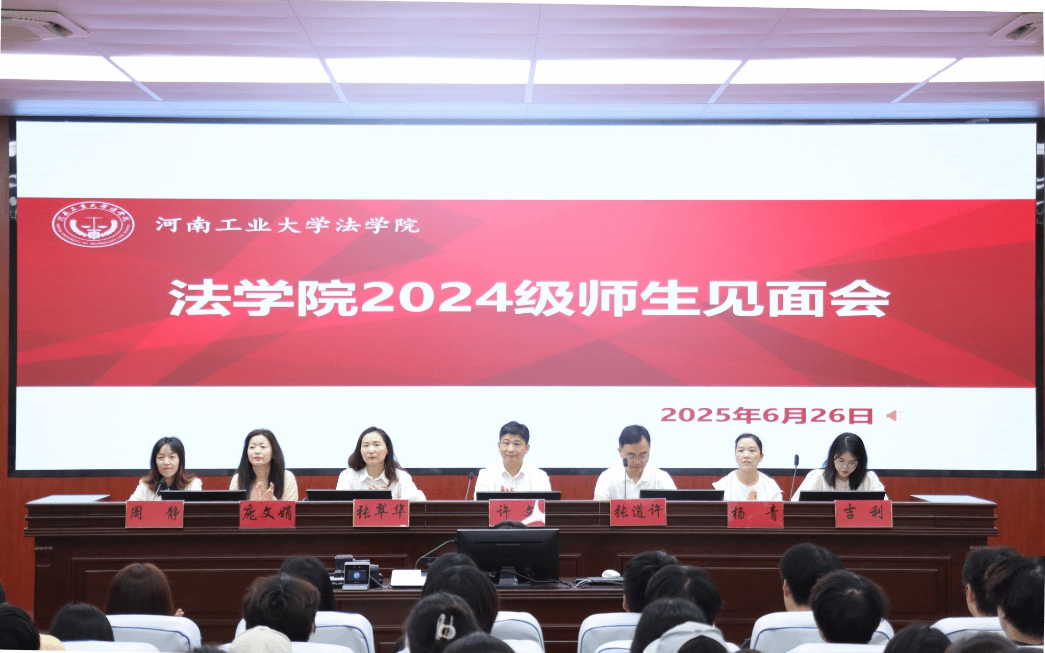 6月26日,法学院在智慧模拟法庭举行2024级师生见面会暨入院教育活动。学院党委书记许文、院长张道许、党委副书记张翠华、行政管理人员及2024级全体学生参加会议。会议由学院团委副书记周静主持。