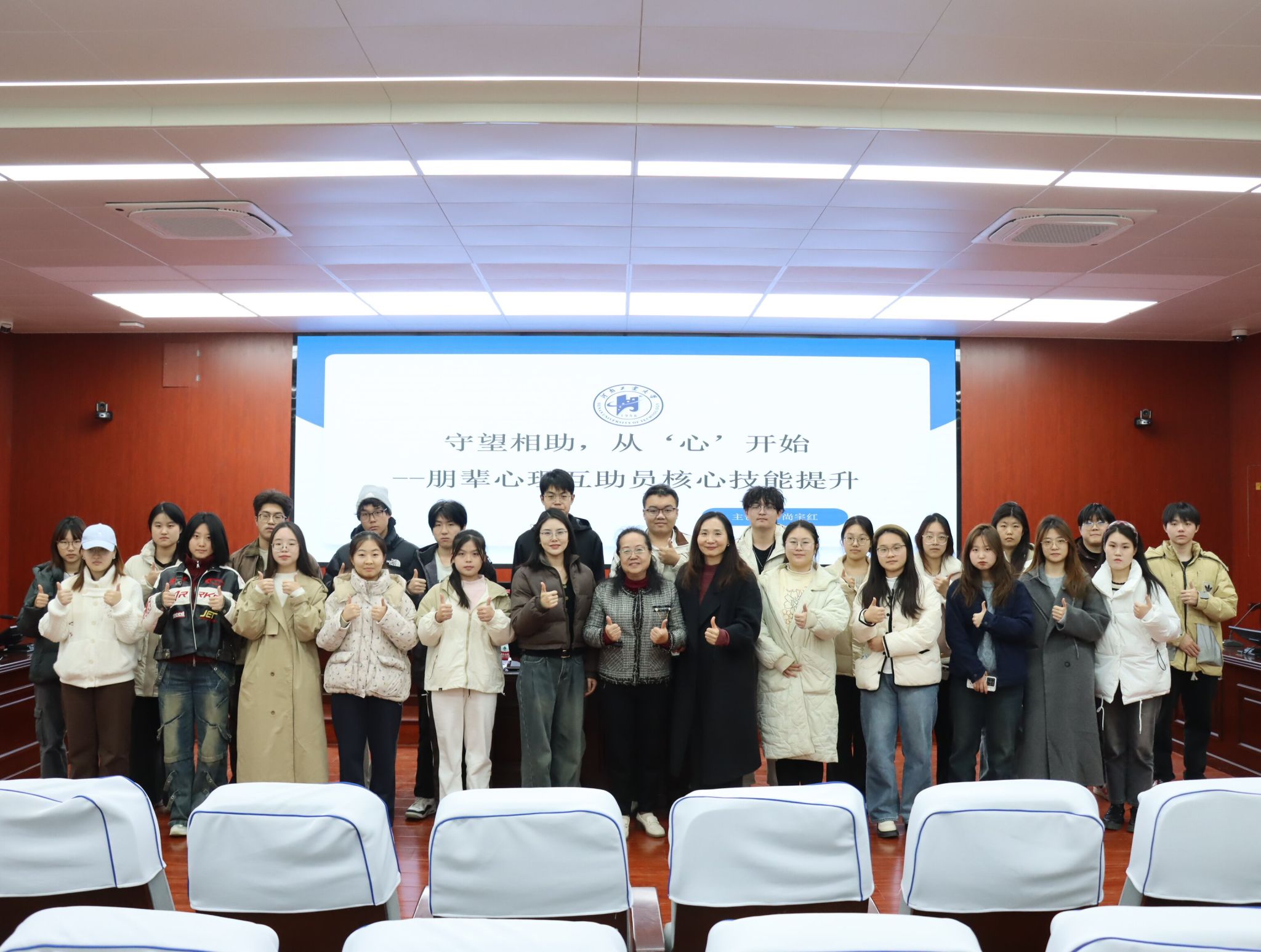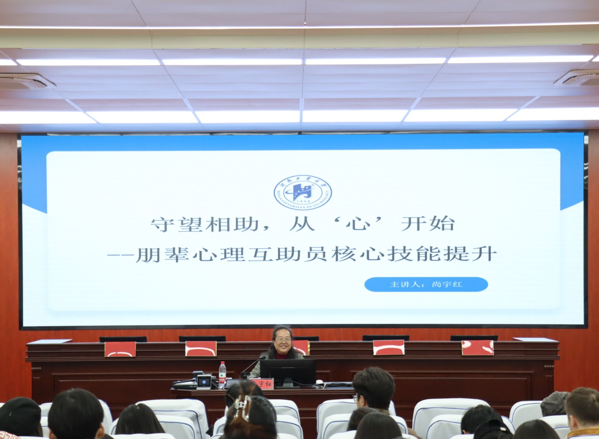 本次培训以“守望相助,从‘心’开始——朋辈心理互助员核心技能提升”为主题。尚宇红老师结合丰富的一线咨询案例,从“朋辈心理互助的目标定位”“核心沟通技巧”以及“自我心理关怀”三个维度展开系统讲解。她清晰界定了朋辈心理支持的伦理边界,介绍了常见心理困扰的识别方法,讲解了有效的倾听与回应策略,引导同学们在助人的同时注重自我关怀,实现可持续的成长。