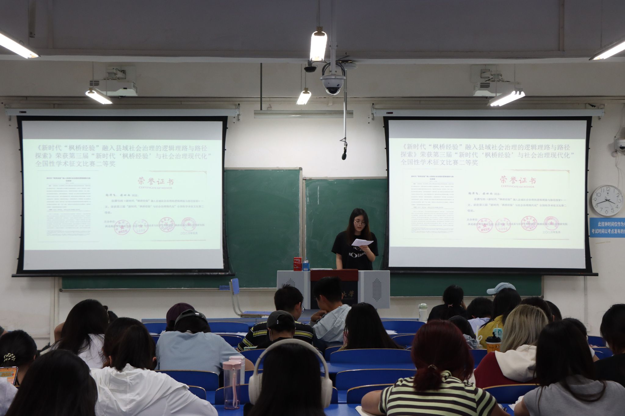 2024年度国家励志奖学金获得者安田雨分享了她在科研、竞赛及社会实践中的经历与体会。她积极参加学科竞赛,并荣获全国性学术征文二等奖;同时参与焦作市法学研究课题,充分展现了其扎实的知识基础和学科热情。此外她鼓励同学们要脚踏实地、注重积累、注重合作,保持乐观向上的心态,以从容不迫的态度面对挑战。