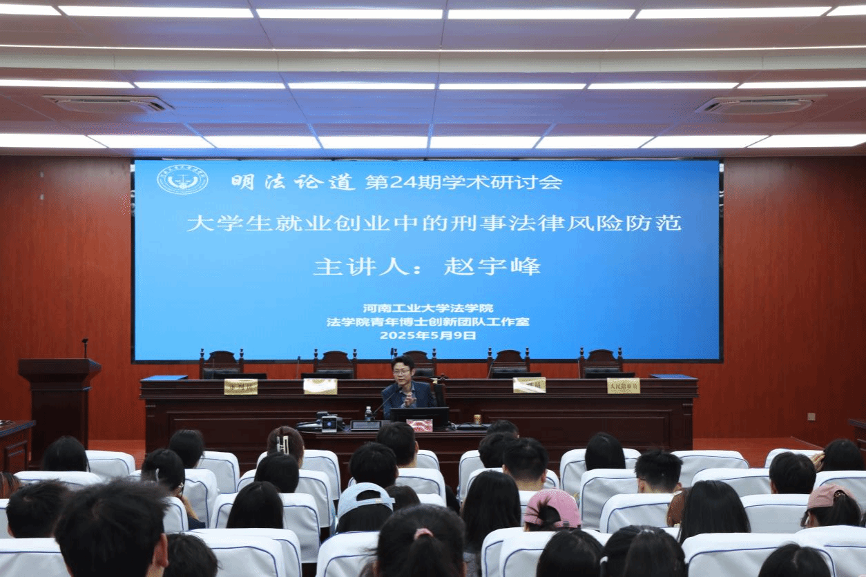为扎实做好就业指导,进一步提高大学生求职就业刑事风险防范能力,帮助同学们顺利就业,5月9日下午,法学院在智慧模拟法庭举办“明法论道”第24期学术报告会暨“大学生就业创业中的刑事法律风险防范”就业指导讲座。上海政法学院刑事司法学院赵宇峰博士担任主讲,学院200余名毕业生参加报告会。报告会由学院党委副书记张翠华主持。